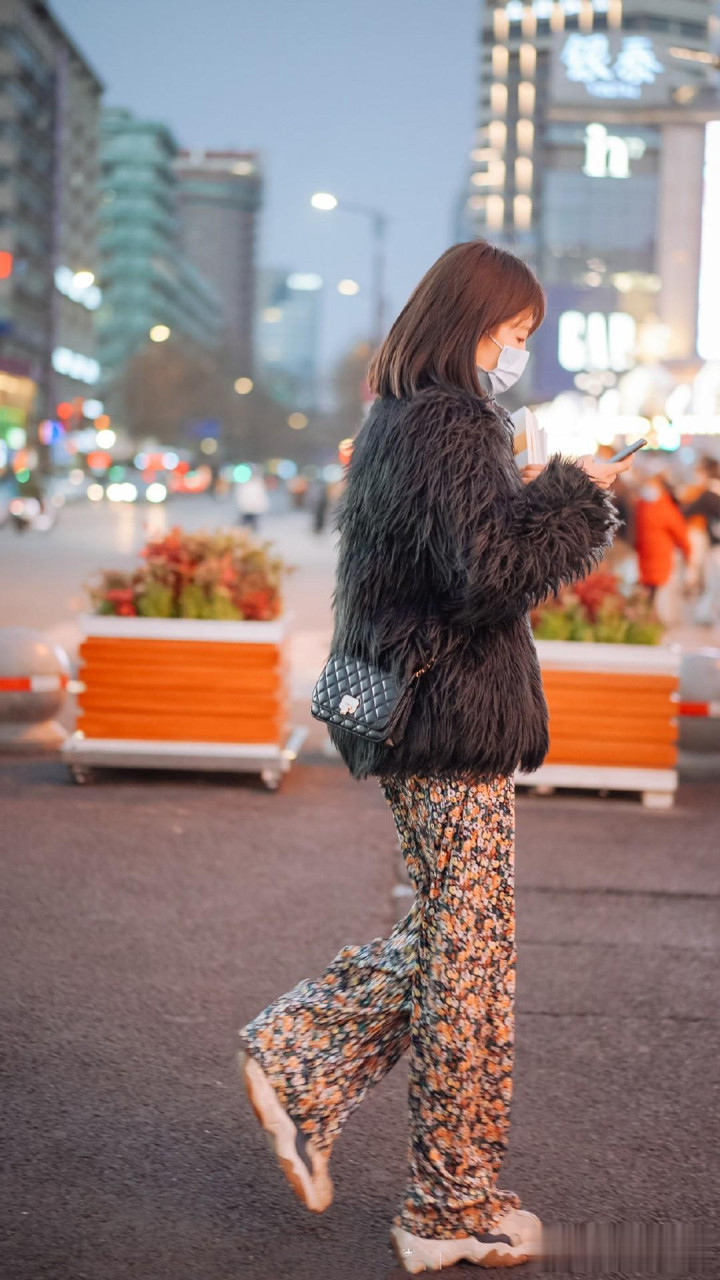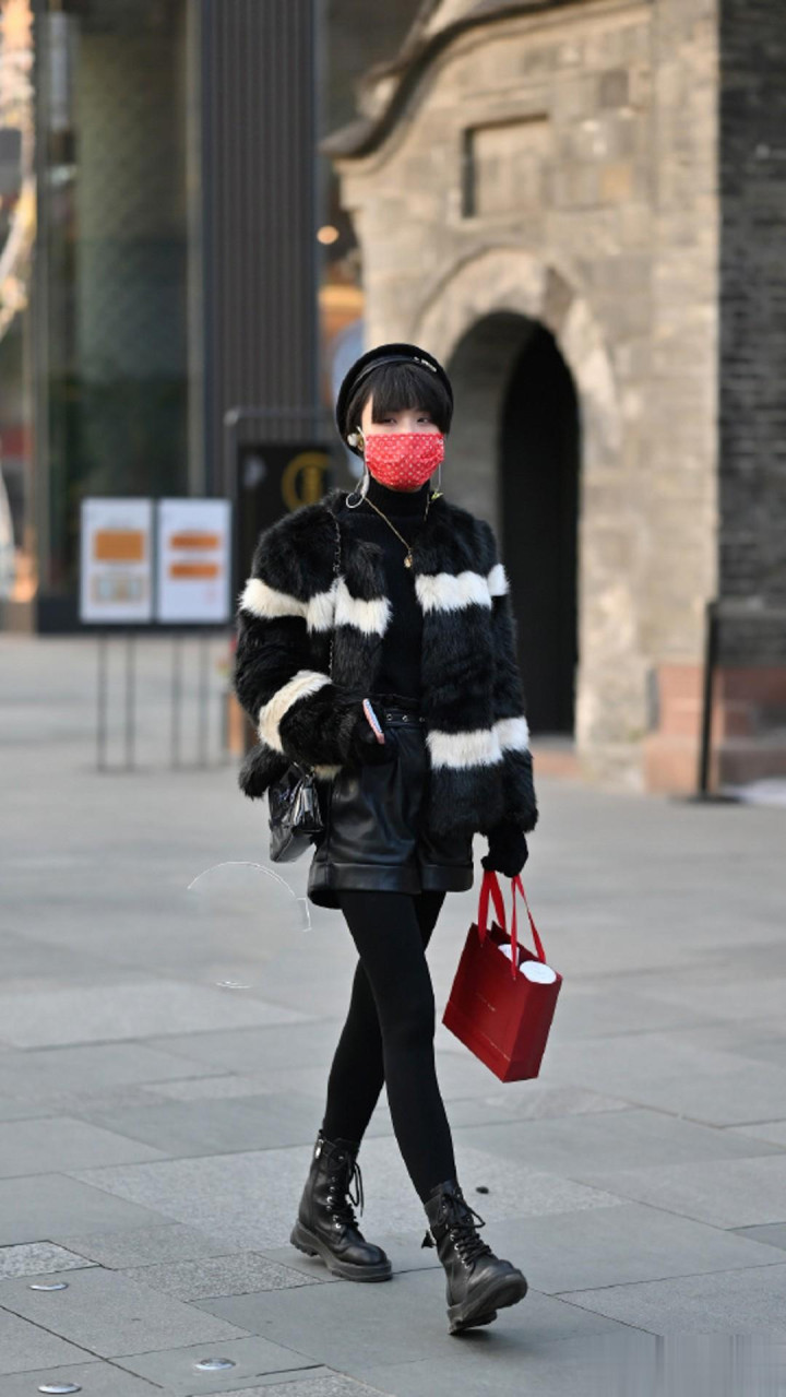 除了围巾,一双浅色的鞋子也能为造型加分不少。一双米白色的厚底搭配黑色皮草,会让整体造型更加和谐且富有层次感。米白色的温暖色调与黑色皮草的冷冽形成了奇妙的平衡,仿佛是在寒冷的冬日里带来了一丝温馨的气息。鞋子款式可以选择带有一些时尚元素的,比如金属装饰或者独特的鞋跟设计,这样在增添活力的同时,还能展现出时尚感。